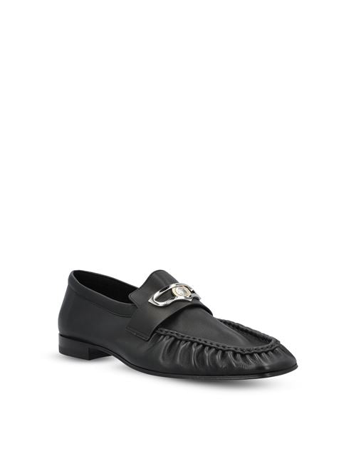 مصنوع بالكامل من جلد نابا أسود لامع، ويتميز بمقدمة مربعة ذات تصميم مطوي. يتميز بمرونته وخفته، كما أن تصميمه العصري معزز بتفاصيل دقيقة.