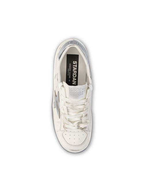 تُعيد أحذية "ستاردان" الرياضية من "غولدن غوس" ابتكار عالم الملابس الرياضية في التسعينيات برؤية جريئة وعصرية. يتميز الجزء العلوي المصنوع بالكامل من الجلد الأبيض بلمسات نهائية تُضفي عليه مظهراً عتيقاً وتفاصيل بسيطة، ليُقدم أسلوباً حضرياً يجمع بين الحرفية العالية وروح الشارع.