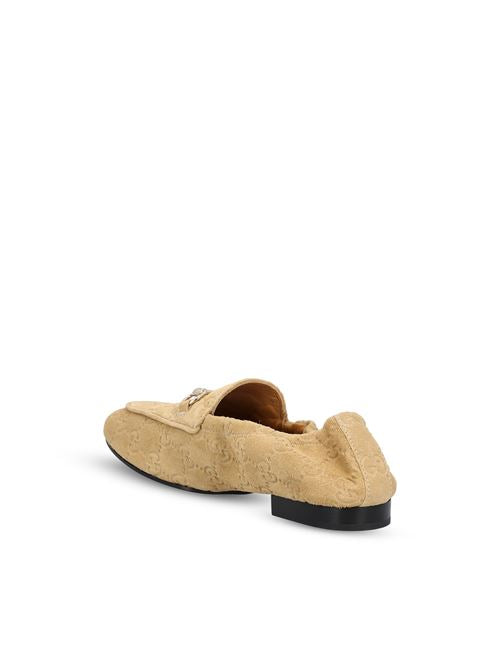 حذاء غوتشي بدون كعب بتصميم أنيق وبسيط، مصنوع من الجلد المدبوغ، ويتميز بشعار GG الشهير الذي يضفي لمسة مميزة على التصميم. حذاء مصمم ليجسد الأناقة اليومية بتوازن مثالي، جامعاً بين الراحة والتميز الذي تشتهر به العلامة التجارية.
