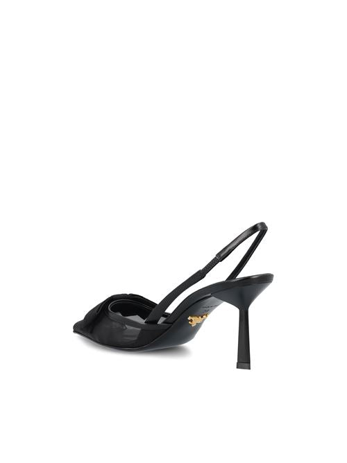 أحذية برادا ذات الكعب المفتوح بتصميم أنيق وخالد، تتميز بقصة مدببة تُضفي على القوام رشاقةً وجاذبية. تصميمٌ يُكمّل خزانة ملابس المرأة بجمالية أساسية وراقية، تعكس أسلوب العلامة التجارية الأيقوني.
