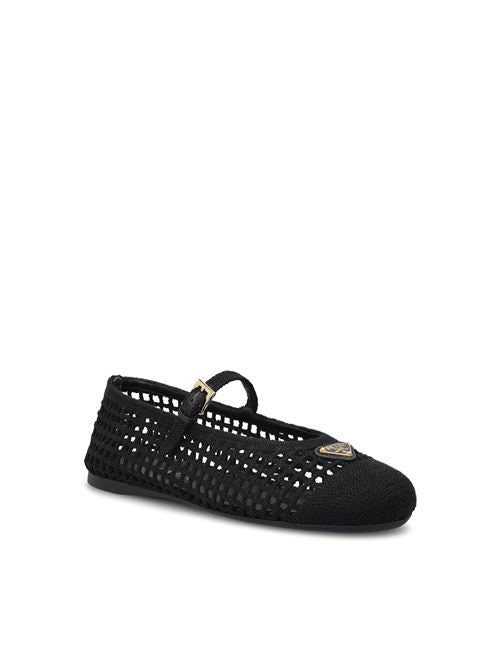 حذاء باليرينا من برادا بتصميم أنيق وعصري، يتميز بحرفية الكروشيه التي تُبرز خفة هيكله وجماله الحرفي. تصميم يُجسد الأنوثة بأسلوب عصري، محافظاً على خطوطه الأساسية المميزة.