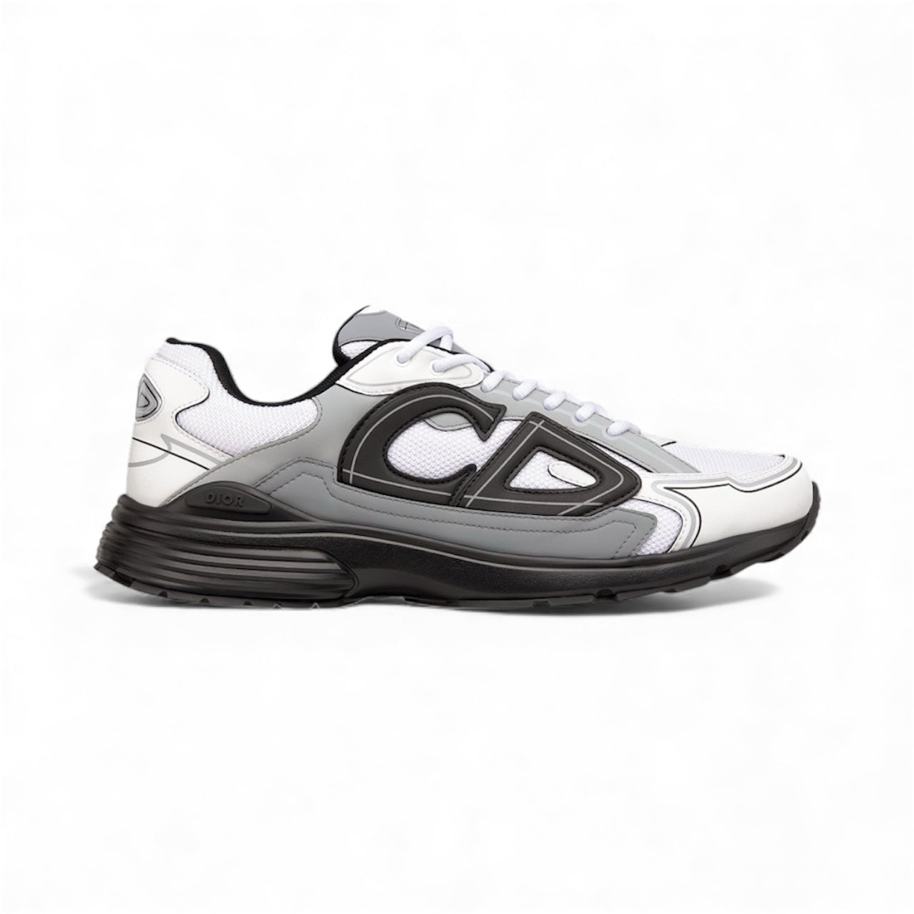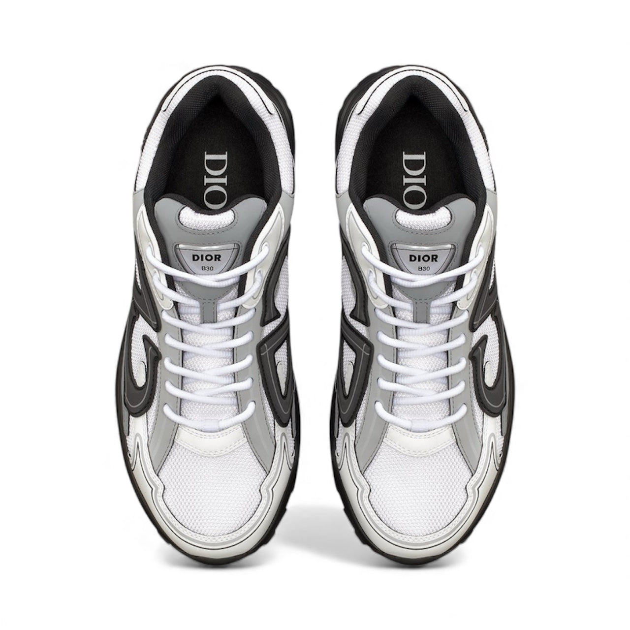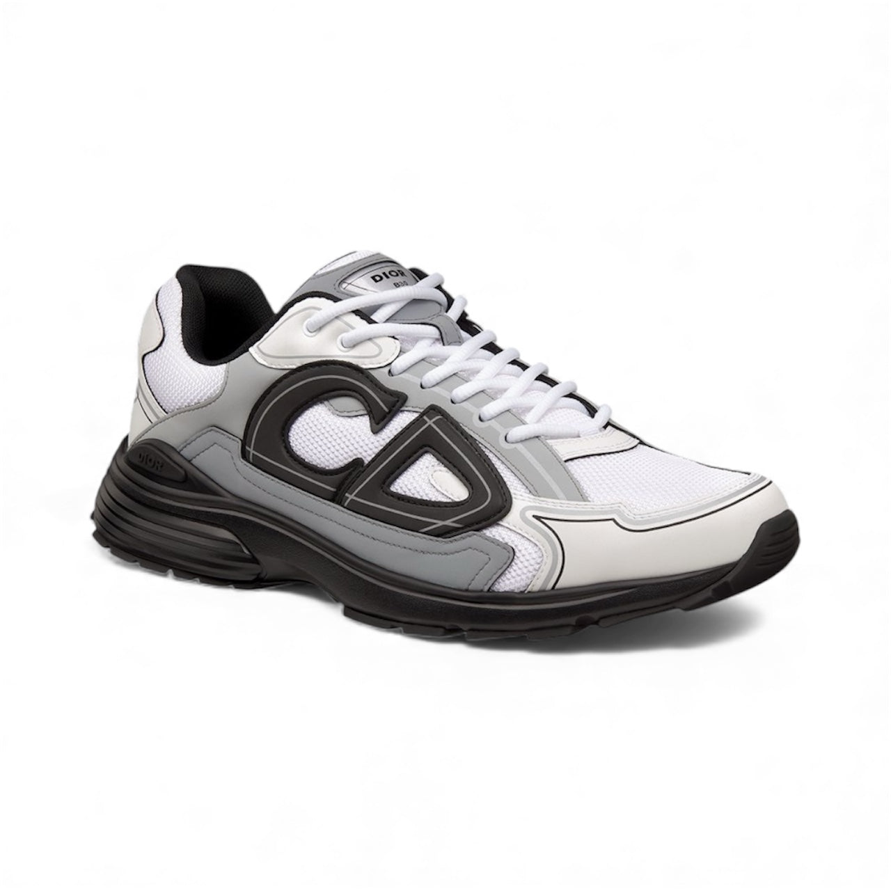 The B30 Countdown sneaker is a new House essential, distinguished by its modern and sporty low-top silhouette. Crafted in white technical mesh and white and gray technical fabric, it is enhanced by a reflective black CD30 signature with a graphic aesthetic. The B30 Countdown also features silver-tone Dior B30 and CD30 signatures on the tongue and back. A sculpted and ultralightweight rubber sole spotlights various hallmark details, while elastic on the interior provides optimal comfort. The B30 Countdown sneaker will complete any casual outfit.