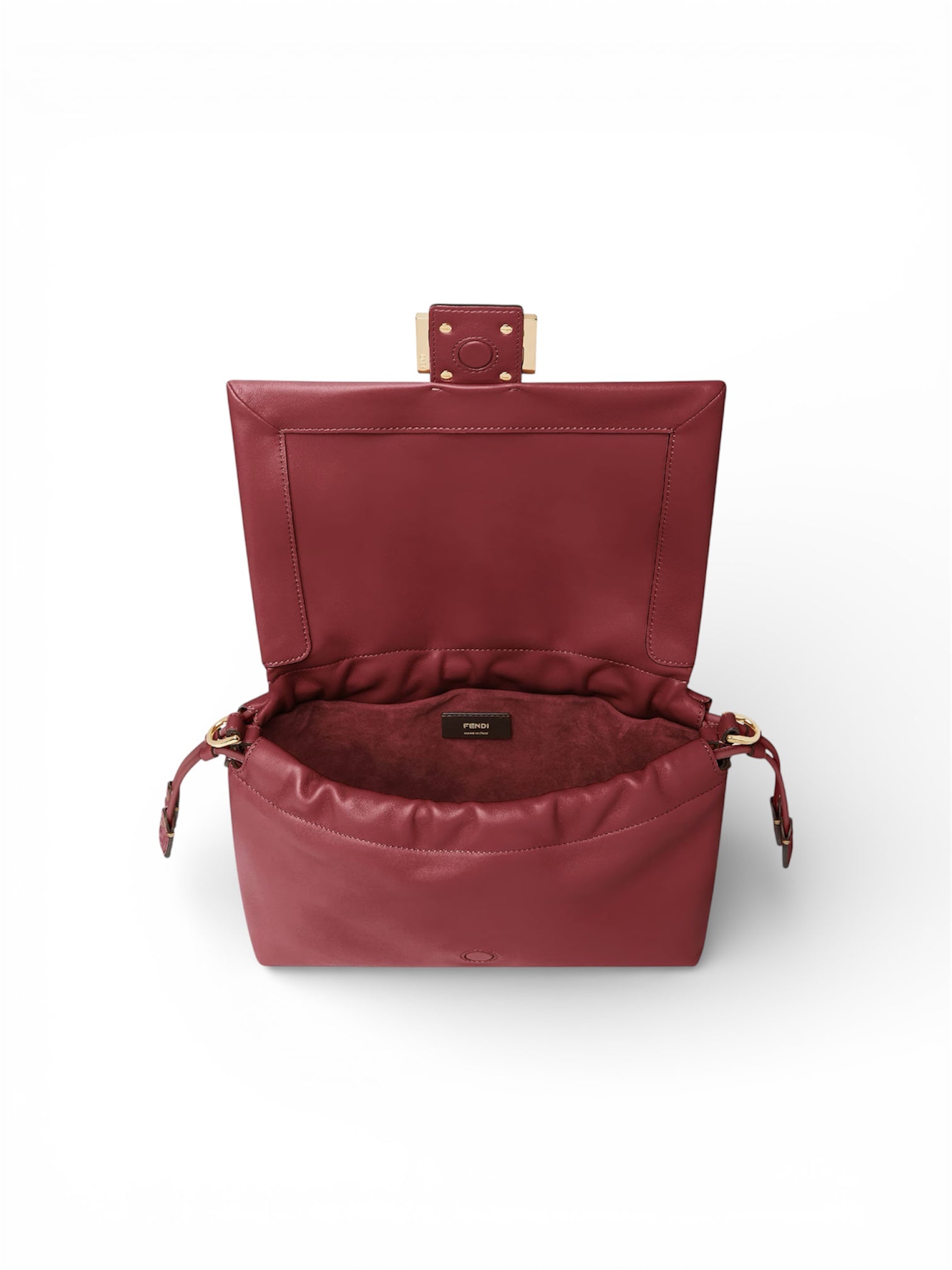 Made of soft, burgundy nappa leather, completed by an FF clasp with tone-on-tone leather insert.