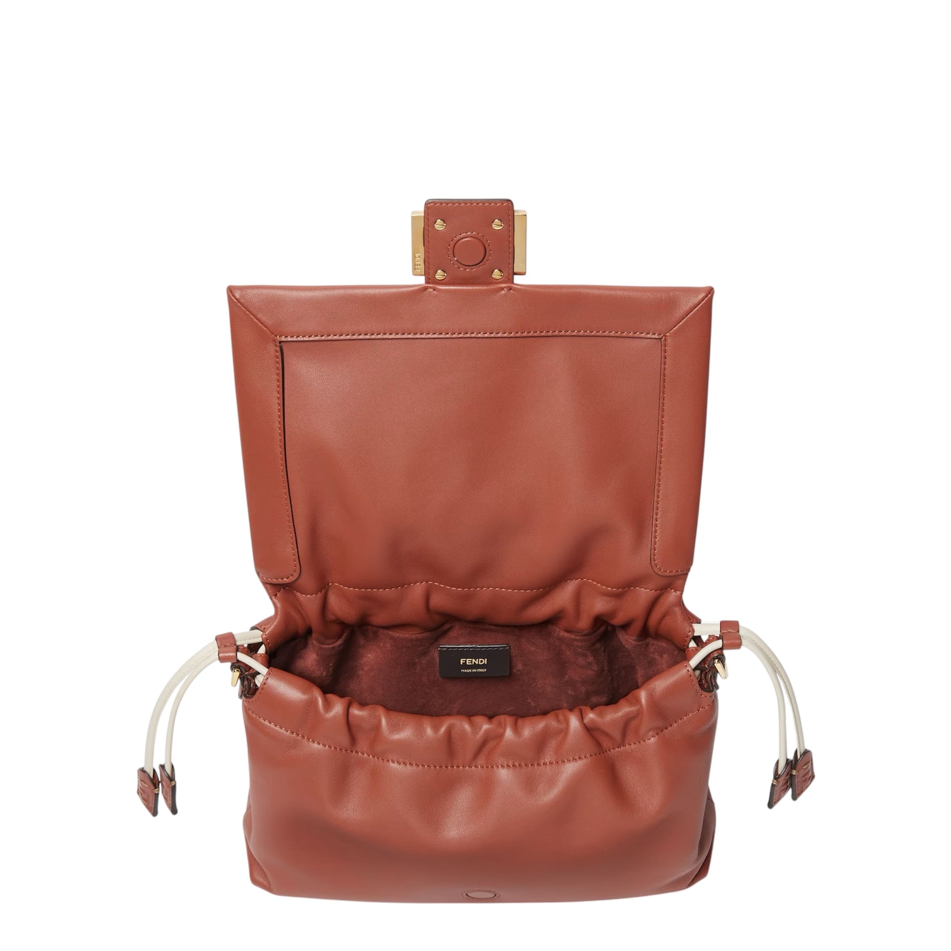 Made of soft, sienna brown nappa leather, completed by an FF clasp with tone on tone leather insert.