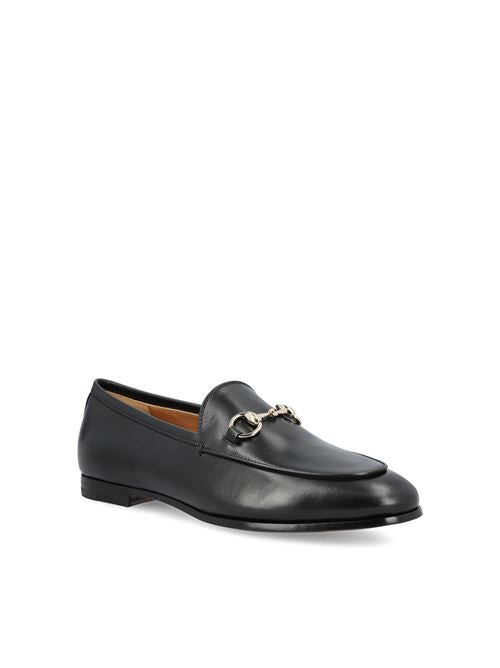An icon of essential elegance. Gucci's Jordaan loafer reinterprets classic style with an elongated and sophisticated silhouette. Crafted in smooth black leather, it is finished with the unmistakable golden horsebit, a symbol of the Maison's equestrian heritage.