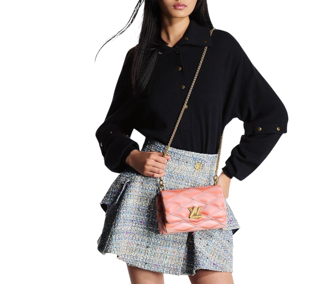This collector's edition of the iconic GO-14 PM bag, a tribute to Nicolas Ghesquière's signature model, was inspired by the captivating Barcelona venue where the Cruise 2025 Collection was presented. Crafted from powder-coated lambskin to create a malletage effect, its design evokes the vibrant colors and mosaics of Park Güell. The accessory, which can be worn in a variety of ways, is completed with a flat pocket and an interior mirror.