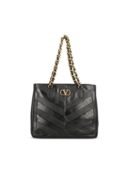 Valentino Garavani's Laseine shopping bag in nappa leather with chevron motif combines soft volumes and a quilted texture that enhances the essential silhouette of the model. The iconic metal detail and fluid handles define a contemporary accessory with sophisticated elegance.